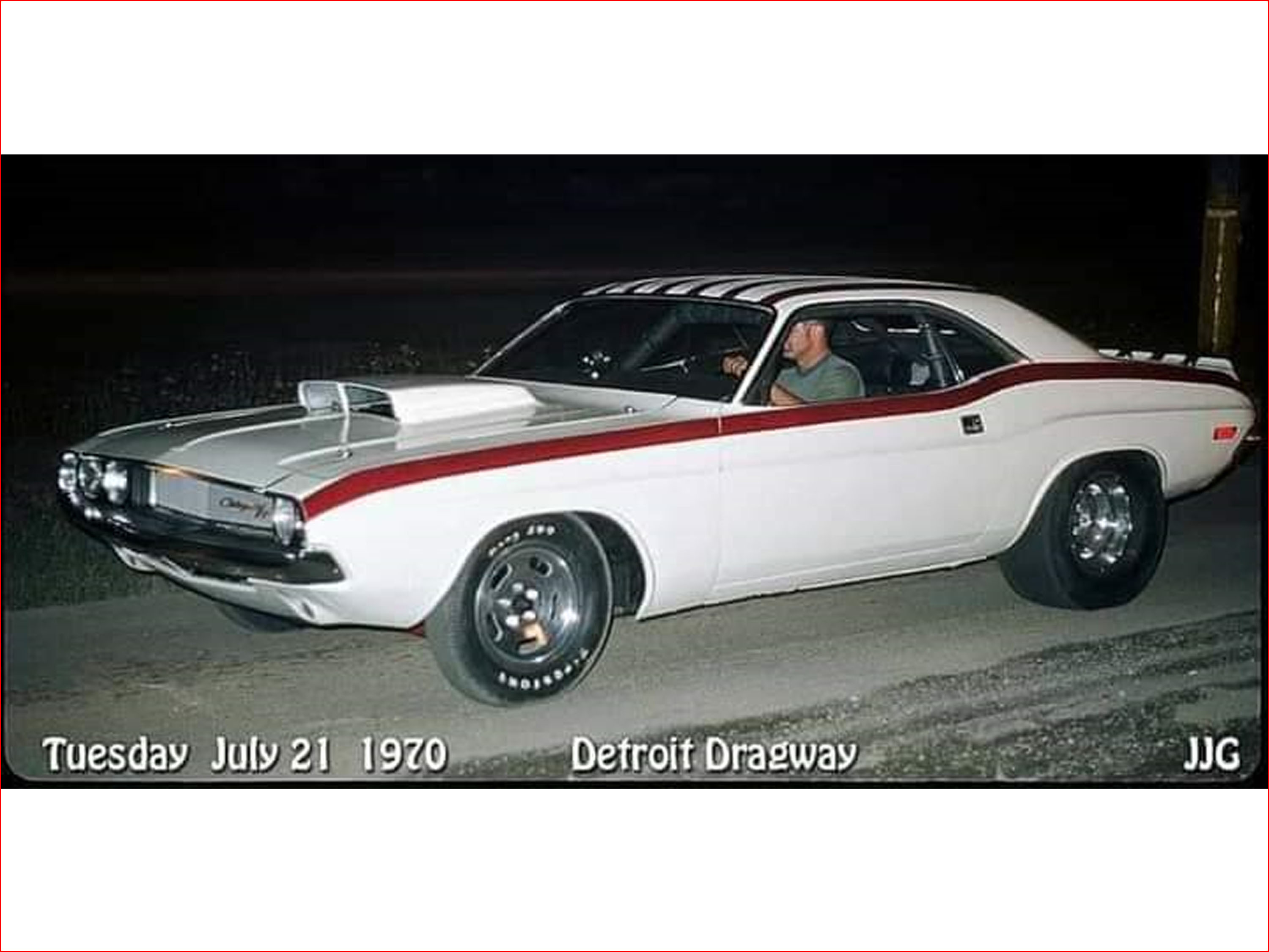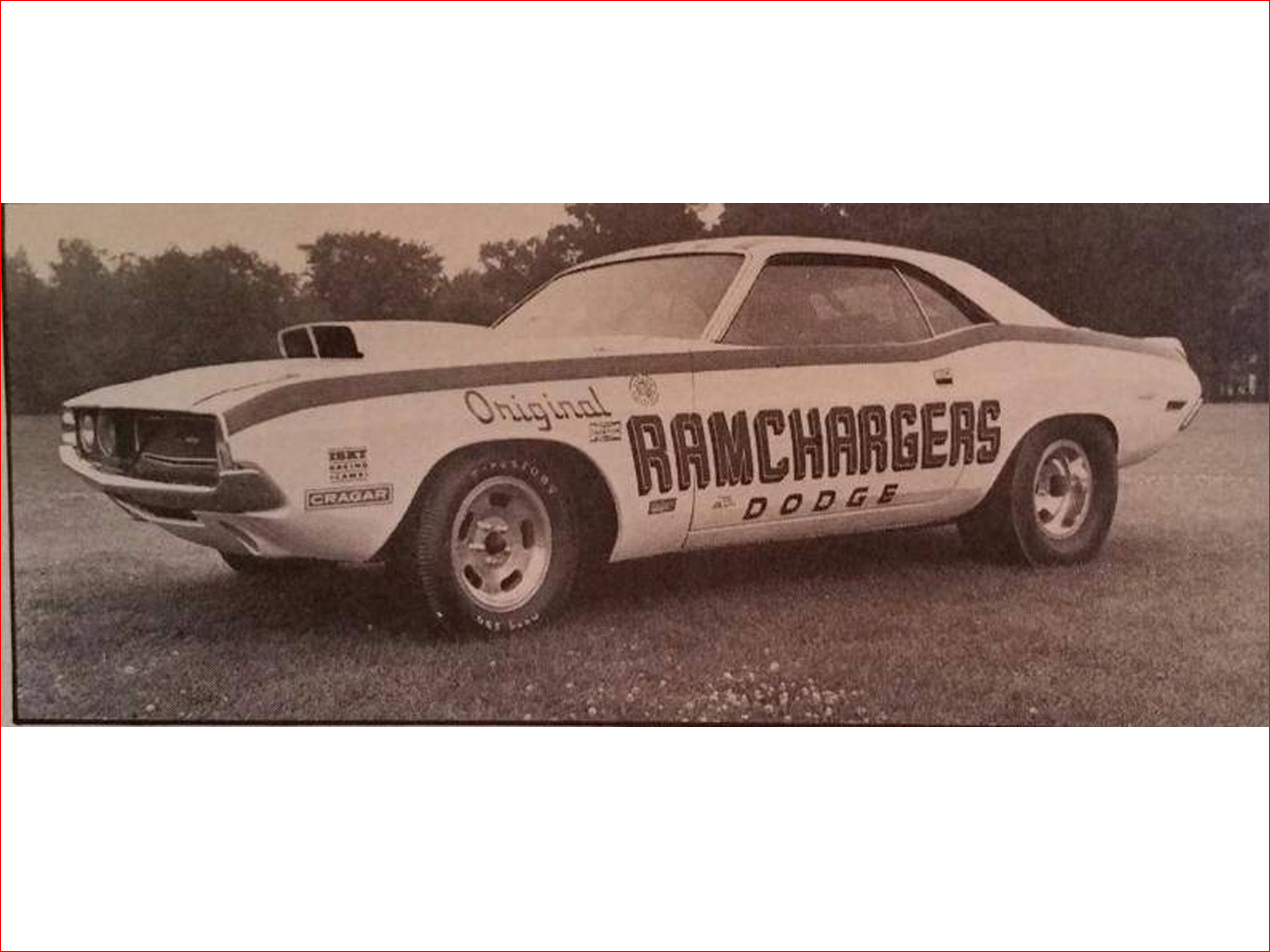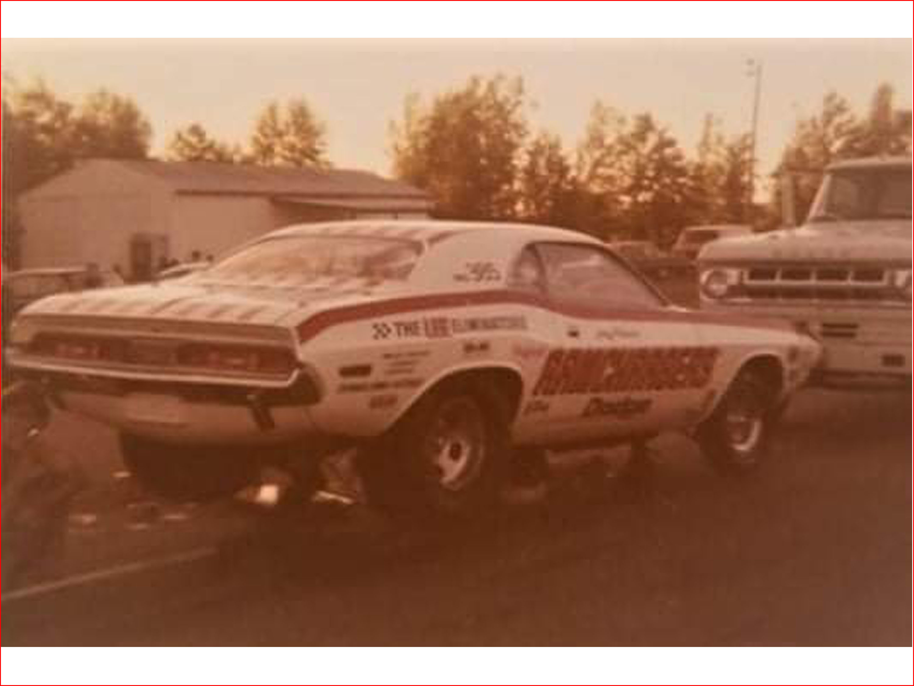 After it returned, the car was painted, received the familiar Candy Red stripes applied to the roof, trunk and sides of the car. Its first tests were done at Detroit Dragway, before the RAMCHARGERS lettering was applied to the sides. Coincidentally the same day that their Challenger Funny Car burned to the ground. July 21, 1970.