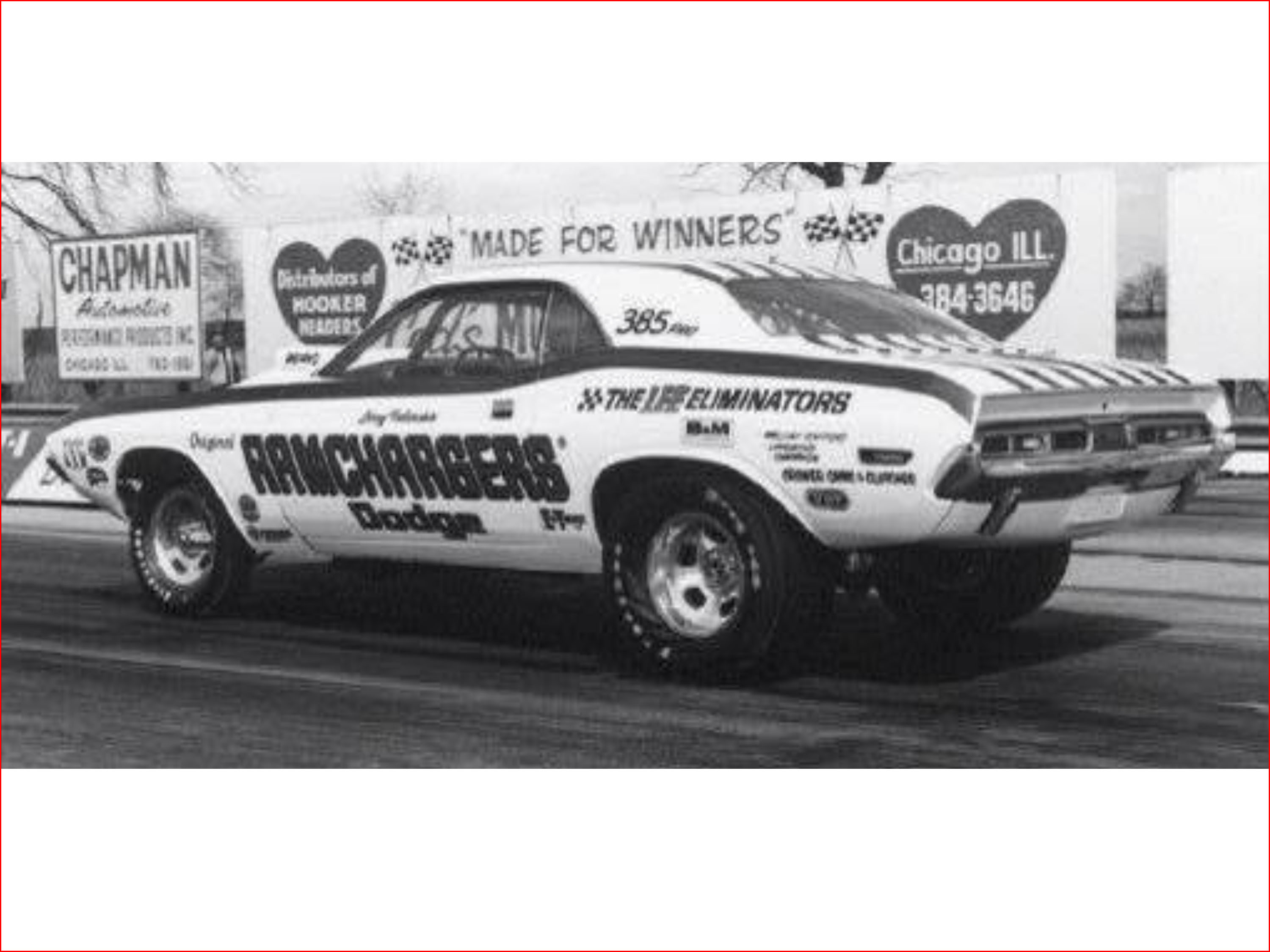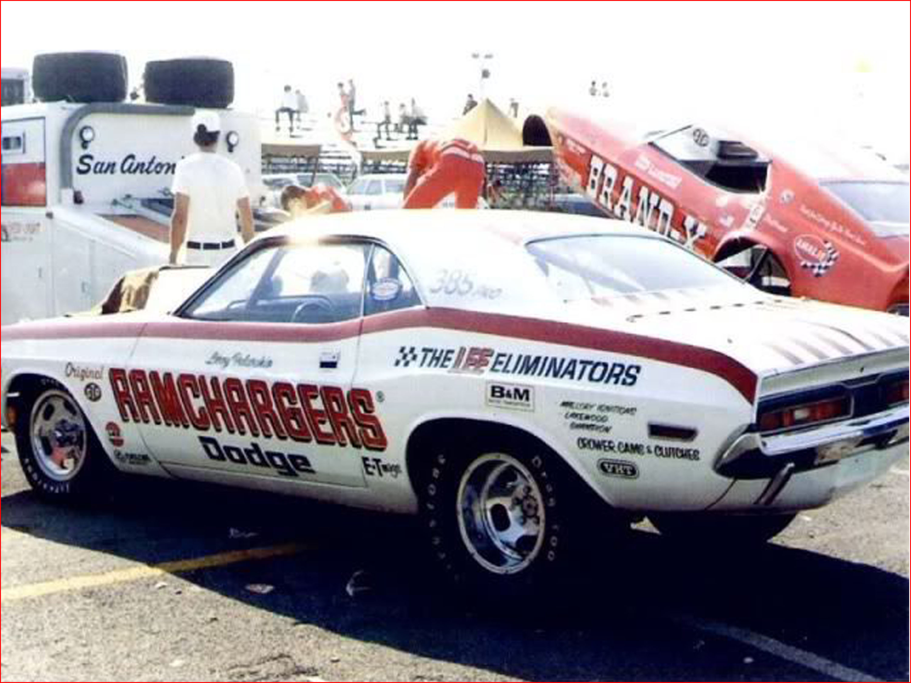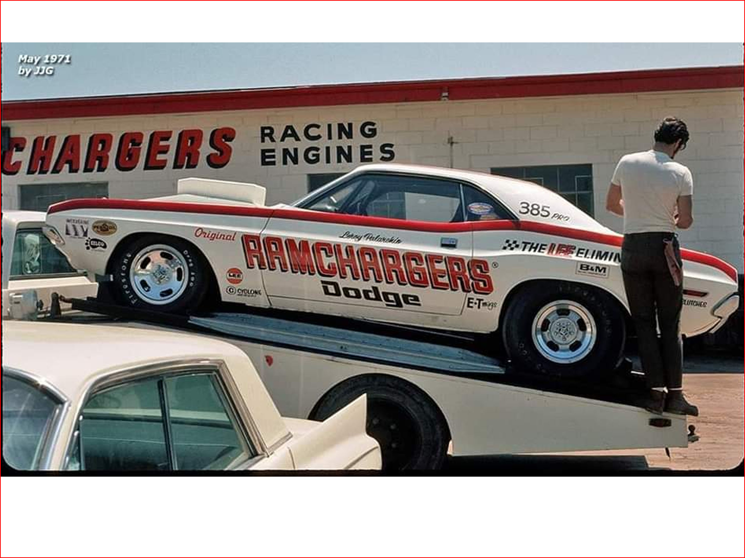 1970 was not too promising for the Pro Stock entry from the RAMCHARGERS. Though the Funny Car was setting records all over the country, the Pro Stock car was not quite so fortunate. Constantly battling the chassis and suspension all season, the Challenger rarely even got out of the first round. With the end of 1970 season, also came the end of the connection with Larry Cooper. He left seat of the RAMCHARGERS and moved his career elsewhere. Cooper would be replaced by driver Leroy Palarchio. Palarchio came with credibility, having been an established driver in many classes and was fantastic with a manual transmission. With the Sox & Martin team dominating the 1970 season with a pair of 4-speed cars, Leroy would be a great choice to compete. The funny coincidence was that the RAMCHARGERS now had 2 different Dodge Challengers, in 2 different classes, being driven by 2 different guys... both named Leroy!