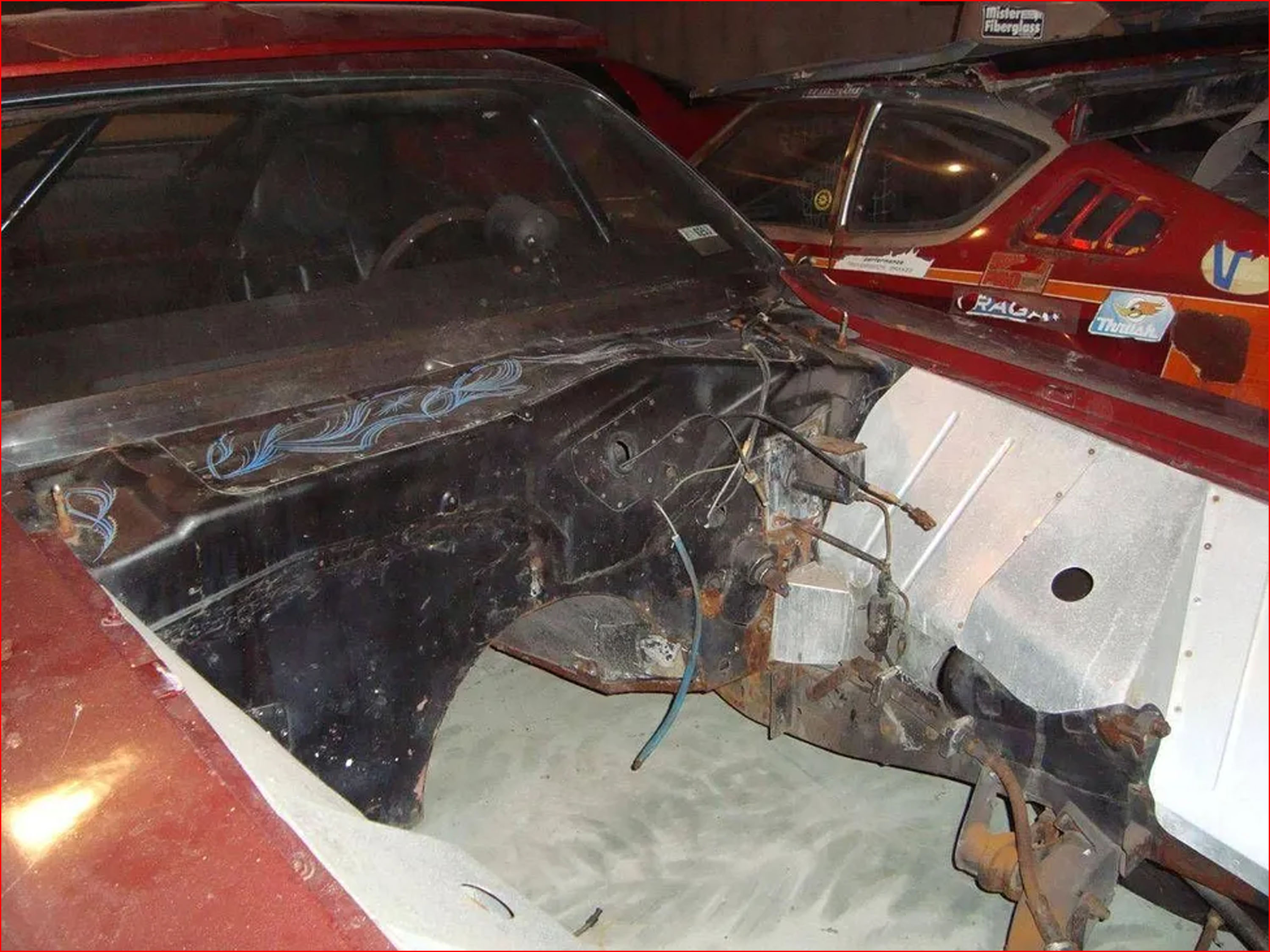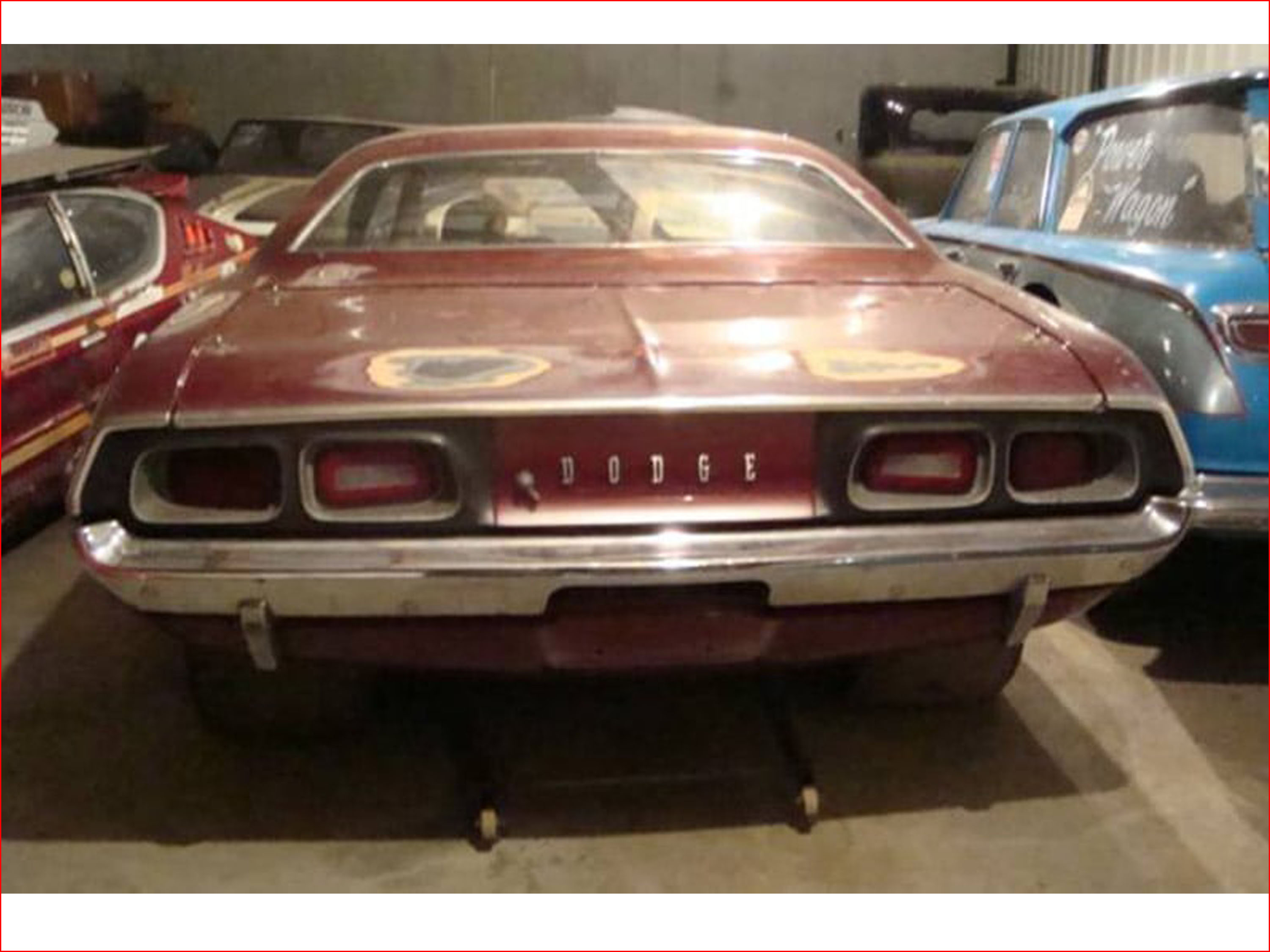 When Flynn was done with the Challenger, it was again sold and again painted. This time in dark maroon. The former Pro Stock car was then redirected as street race car until it was put out to pasture. Literally. The car was found a few years ago in a cow field. It was rescued and put into a storage warehouse, where it sits today.