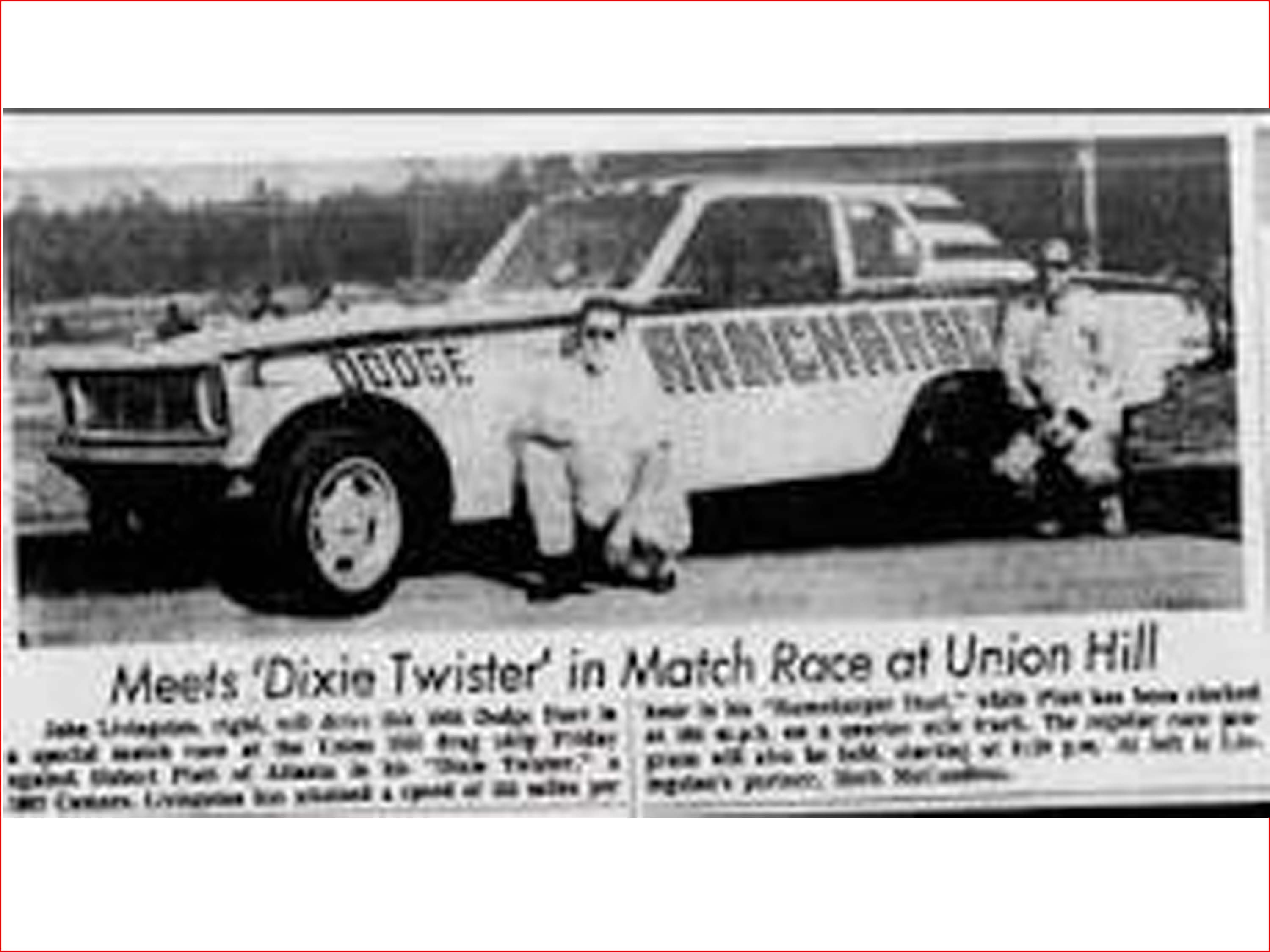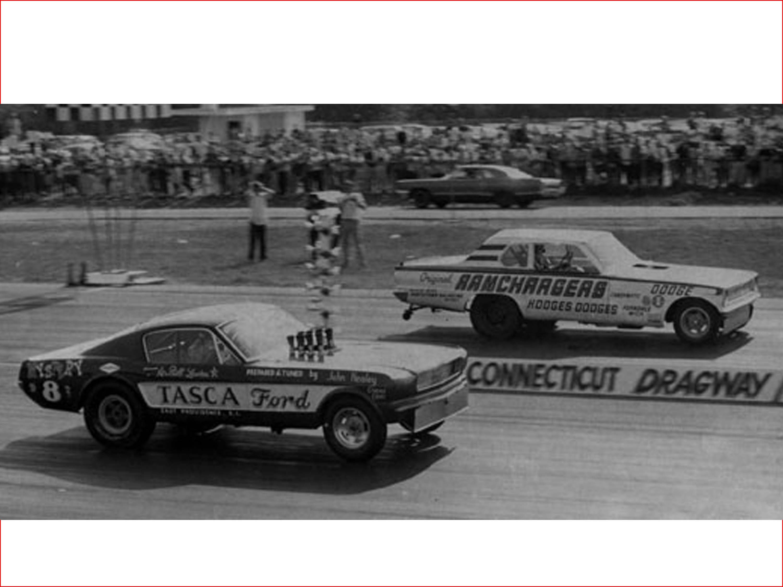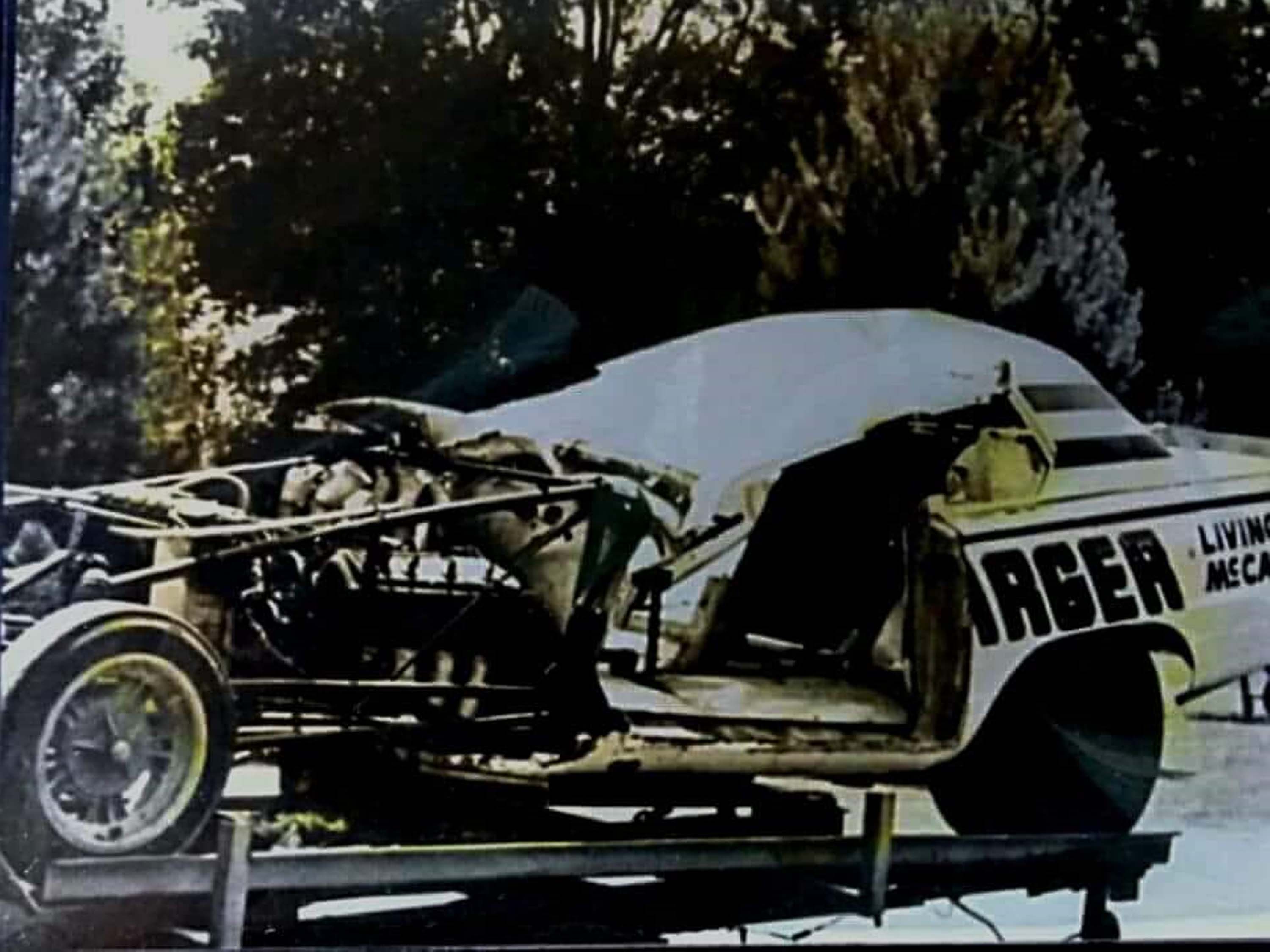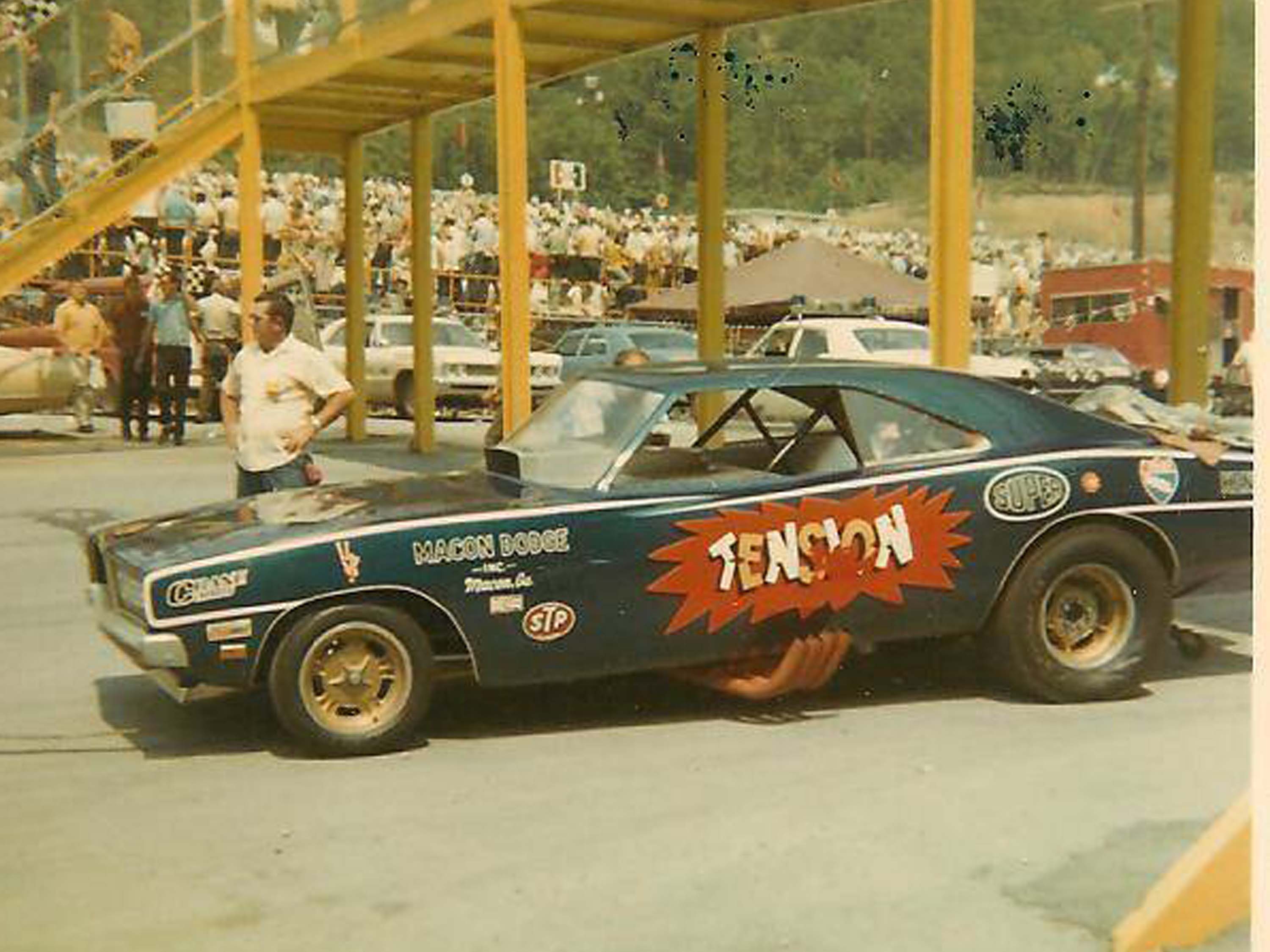 On Friday, May 12th, 1967, a Match Race was scheduled between the " RAMCHARGER Dart" and Huston Platt's "Dixie Twister" 1967 Camaro, at Union Hill Dragstrip in Tennessee. With John Livingston behind the wheel, the Dart would find itself in a horrible crash, ending up on its roof. John managed to survive the crash and continued to race for many years to come. But the Dart didn't fare so well. The body was destroyed. John and Herb sold the chassis to Sherl Greer who put a new 1969 Charger body on top of it for the 1969 and 1970 seasons. The New Charger body in metallic Blue sported the very well-known TENSION graphics on the sides, which Shirl Greer was well known for. When Greer was ready to move on to a new Funny Car for 1971, he sold the Charger to Gary Litton, who campaigned it as his Tennessee Shaker for a couple seasons. It changed hands at least two more times after that. From there, the Woody Gilmore chassis which was once a RAMCHARGERS Dodge Dart in a former life, slipped into obscurity.