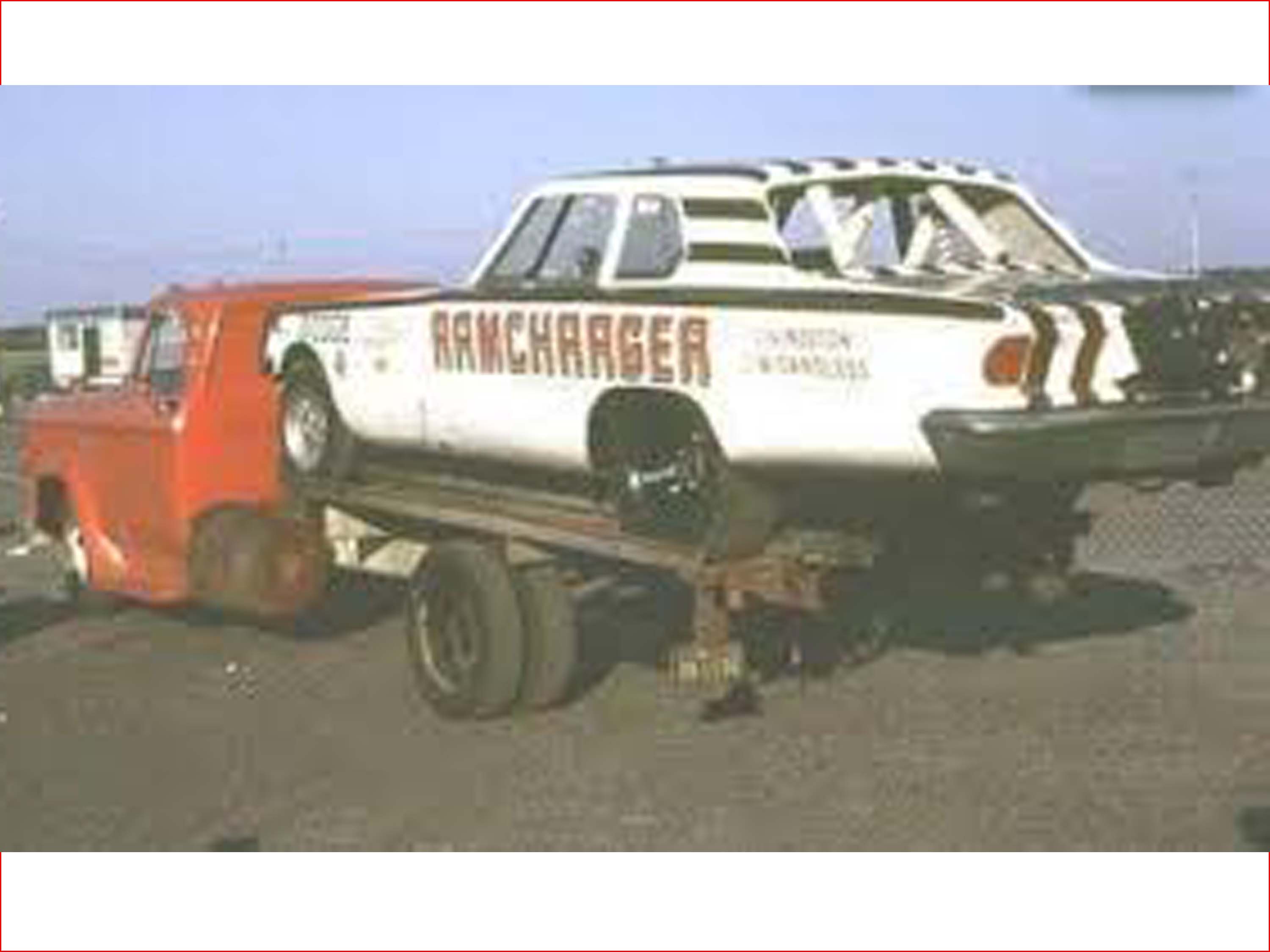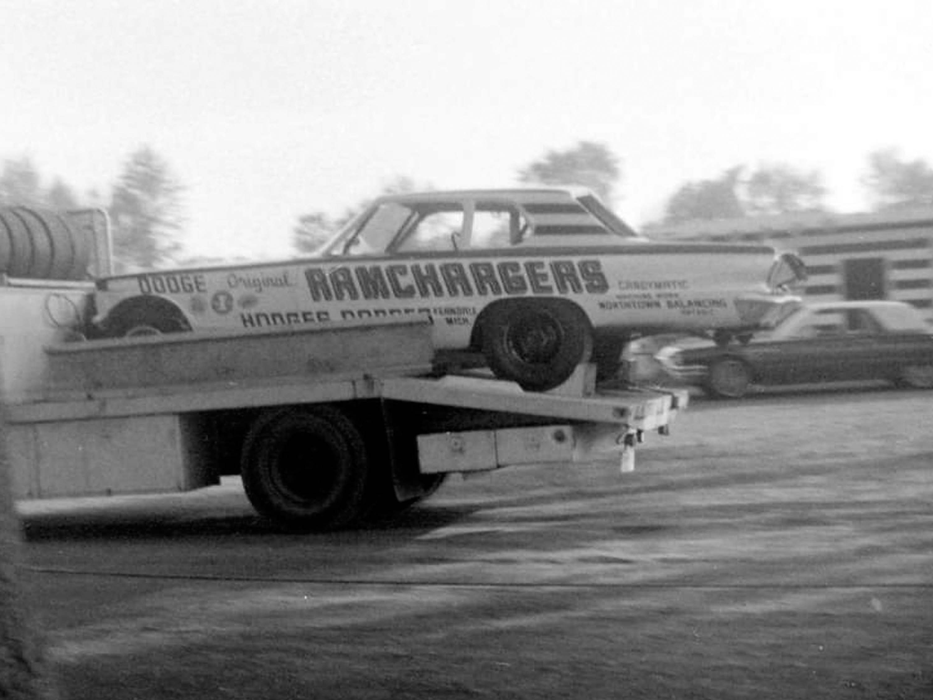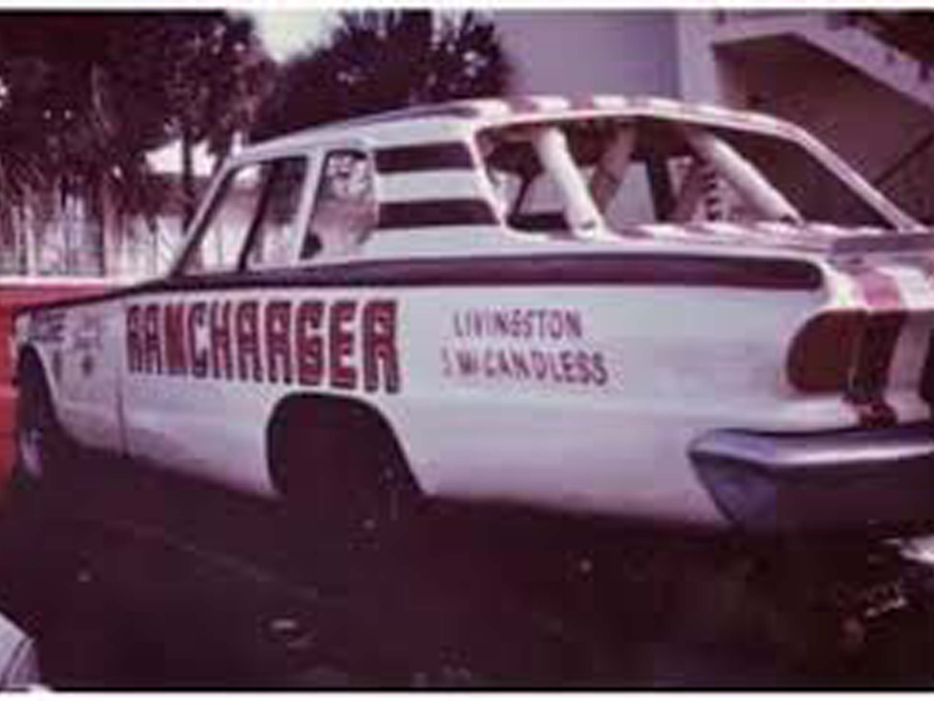 When it was time to move on from the 66 Dart, it was John Livingston and his partner, famed Super Stock Racer, Mr. Four Speed, Herb McCandless who showed up with their checkbook. When Herb and John took possession of the Dart, they removed the "S" from the end of the RAMCHARGERS name on the sides of the car and attempted to race the car under the title "The R RAMCHARGER." Everything else on the car's appearance was left alone. Candy Stripes and all. Obviously, this did not sit well with the actual RAMCHARGERS. Mike Buckel even approached McCandless and told him he needed to paint the car and change the name. But before Herb and John had the chance to do that, the Racing Gods had an even bigger objective to this livery.