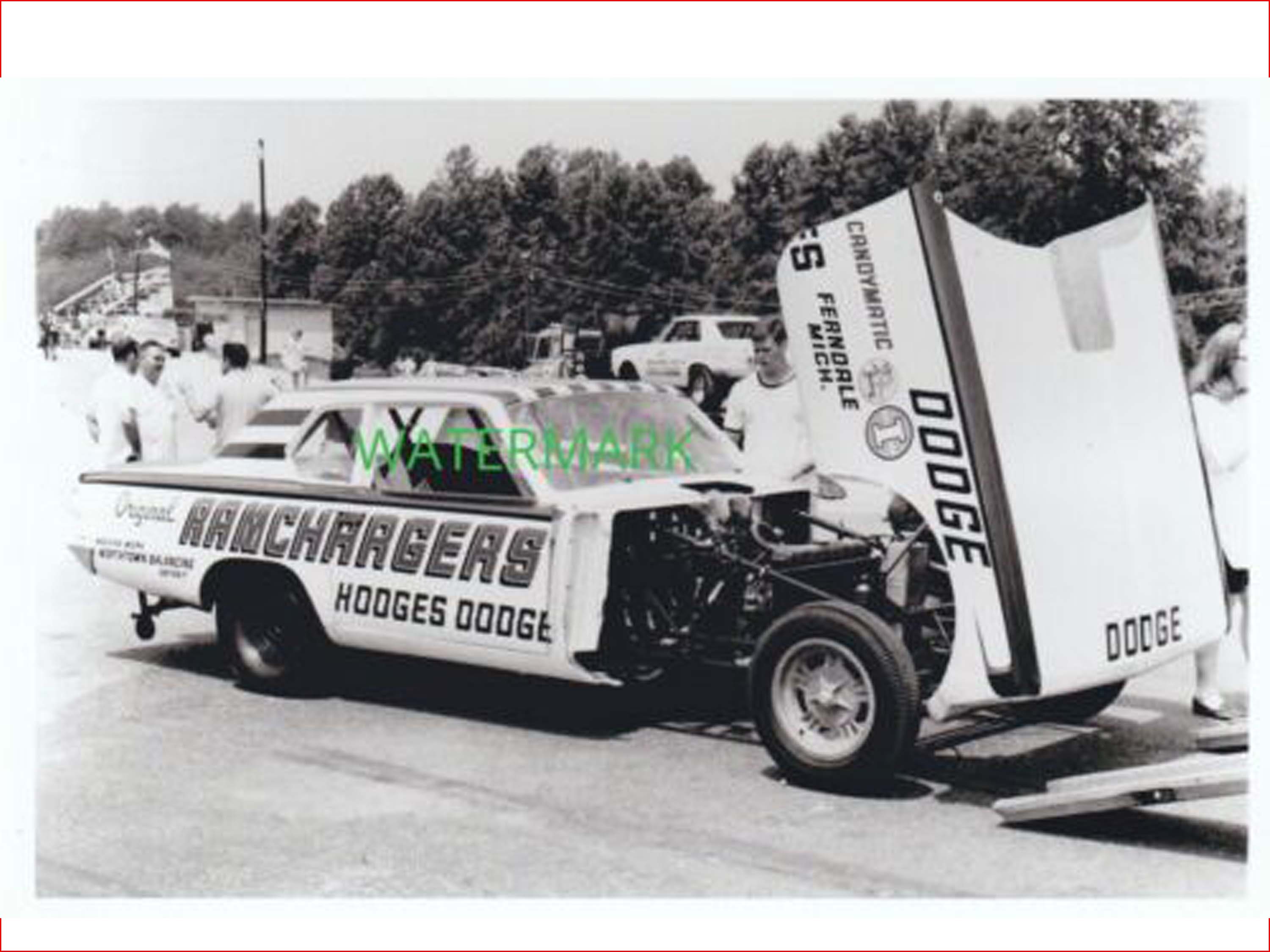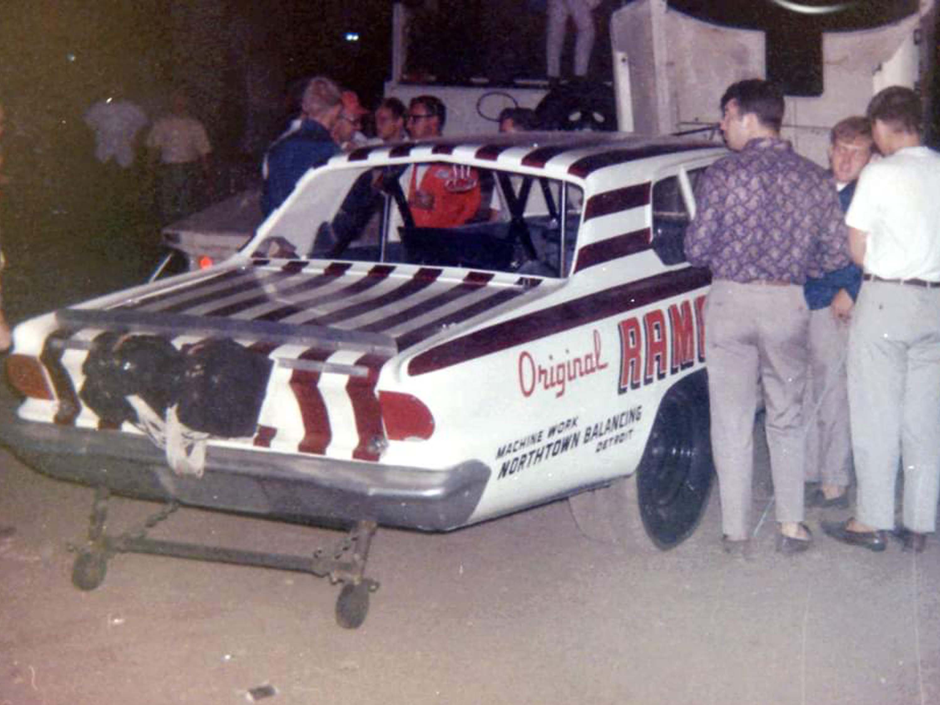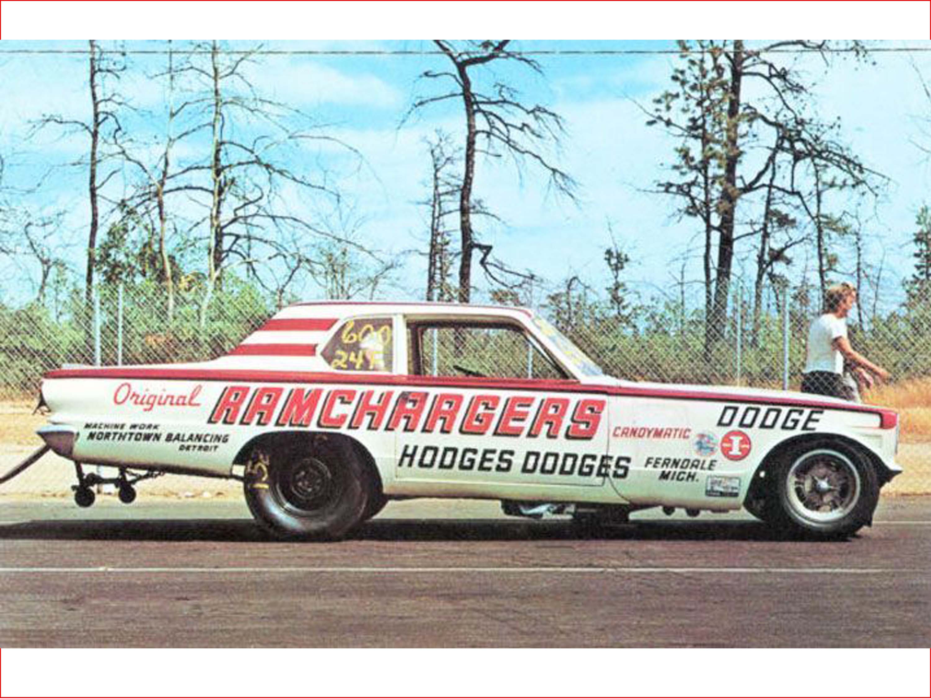 When it was time to move on from the 66 Dart, it was John Livingston and his partner, famed Super Stock Racer, Mr. Four Speed, Herb McCandless who showed up with their checkbook. When Herb and John took possession of the Dart, they removed the "S" from the end of the RAMCHARGERS name on the sides of the car and attempted to race the car under the title "The R RAMCHARGER." Everything else on the car's appearance was left alone. Candy Stripes and all. Obviously, this did not sit well with the actual RAMCHARGERS. Mike Buckel even approached McCandless and told him he needed to paint the car and change the name. But before Herb and John had the chance to do that, the Racing Gods had an even bigger objective to this livery.