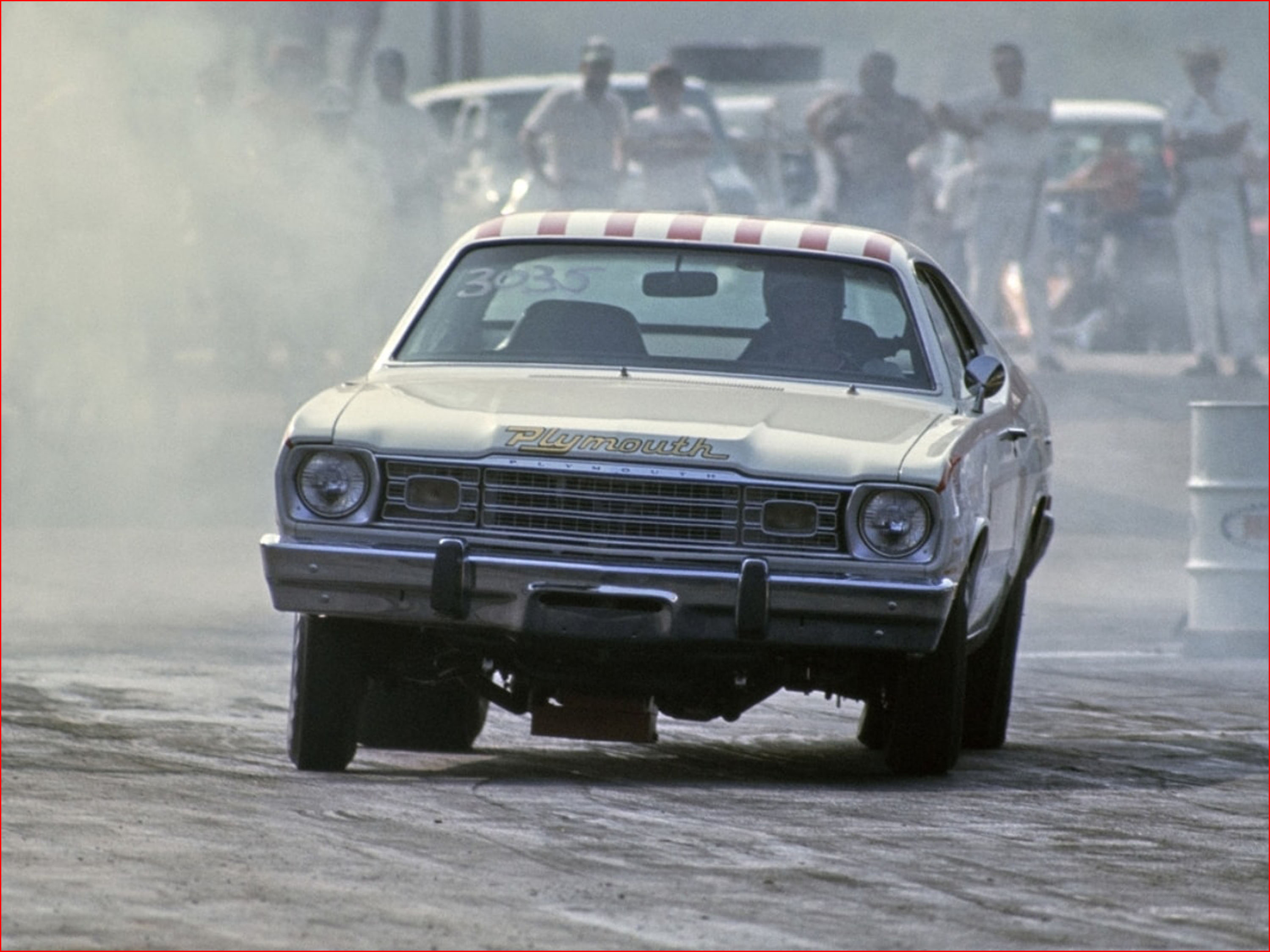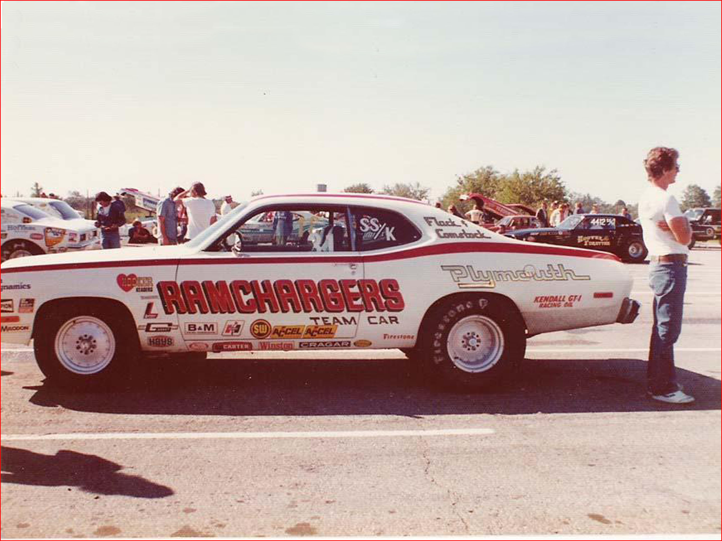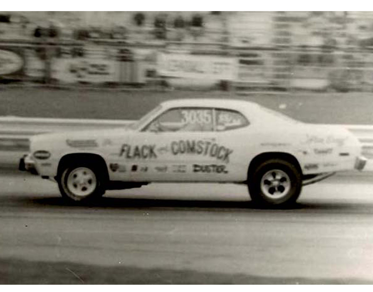 But in 1973, Flack was behind the wheel of their new SS/D car, and his racing partner, Howard Comstock was under the hood. The Flack & Comstock SS/D Plymouth was a fierce competitor in 1973. That's when Chrysler approached Ted about a sponsorship. They, along with Butch Leal and Judy Lilly, had been chosen by Chrysler to carry their name in Super Stock racing. They wanted all three of them to run 360 powered Plymouth Dusters. That's what Chrysler wanted to promote. And those were the Drivers that Chrysler wanted to do it with.