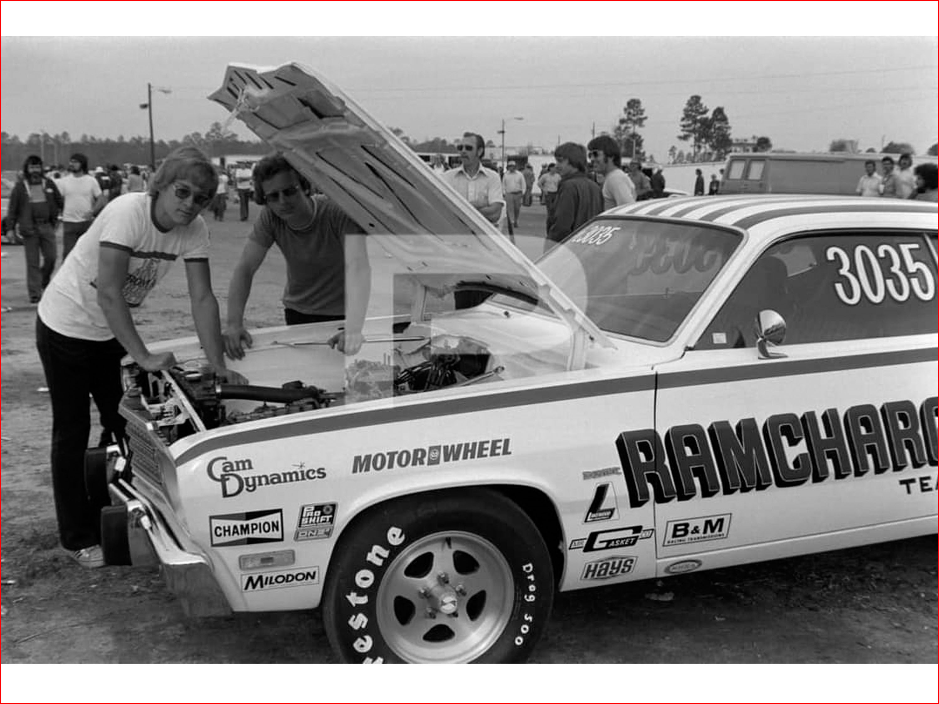 As the season ended, and preparations for 1975 were on the horizon, Flack conspired with fellow Super Stock Racer, Dean Nicopolis to put together something big. The two of them, both from Southeast Michigan, were commonly found at the RAMCHARGERS shop in Taylor, Michigan, and became friends. And with the cooperation of former RAMCHARGERS Pro Stock Driver, and current Co-Owner, Leroy Palarchio, they created a brand new RAMCHARGERS Super Stock Team for 1975. (For more on this, see Car #3100).