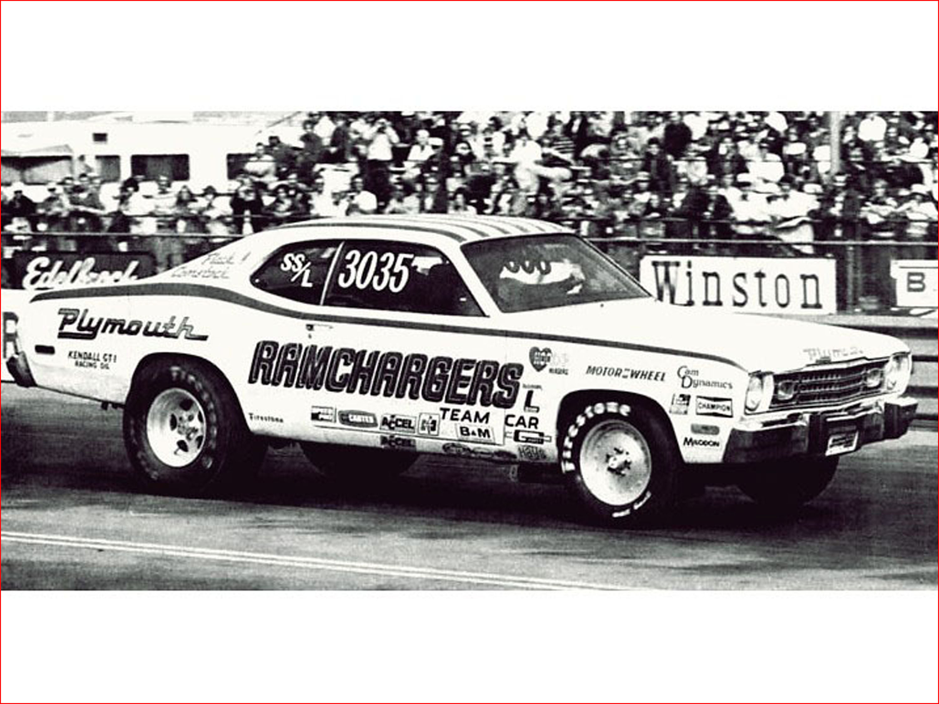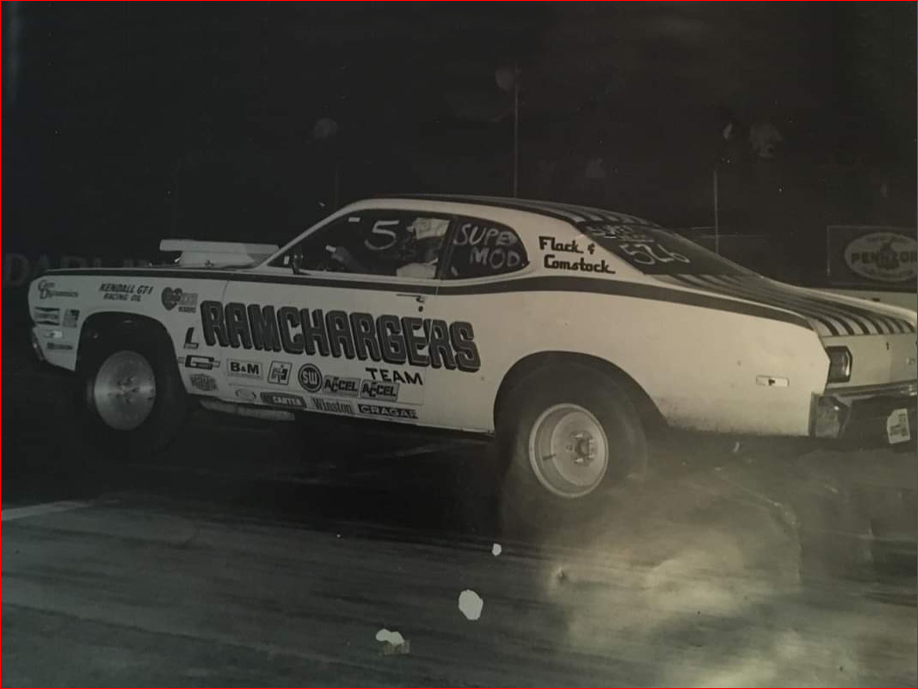 Ted Flack had made his name in the Super Stock ranks throughout the late 60's and early 70's. He was an Engineer and Dyno Operator for Chrysler. Running a 1964 Plymouth with a Max Wedge engine, named Plum Crazy in C/Stock from 1970 and 1971 and SS/EA in 1972. Flack was a very well-known and successful racer. Later in life, he would continue working for Chrysler in their racing division and would become one of the leading and most important people, along with Howard Comstock and RAMCHARGER John Wehrly, in Chrysler's return to NASCAR in 2001.
