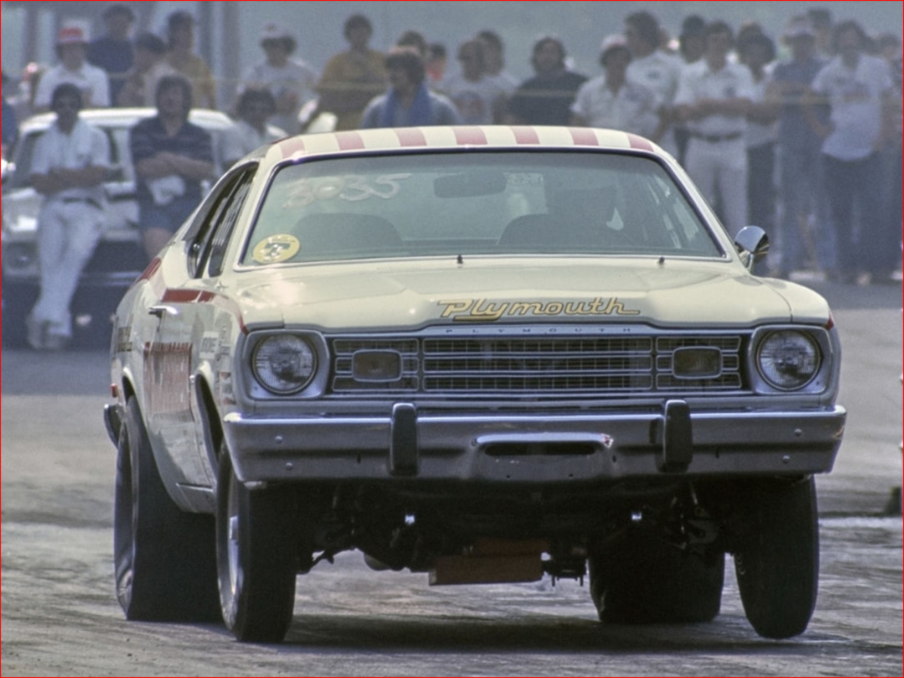 After two years of dominance, and also three years of fighting red-tape with NHRA, they grew tired of the drama and decided to go a different route in 1977. The Duster ran as SS/M when new and was factored all the way up to SS/J when they decided to move to Modified Eliminator. Tom Cunningham of Mancini Racing had taken an old Dodge Demon Pro Stock car and updated it to 1976 Dodge Dart Sport styling and set it up to run in E/Gas. Having a few struggles with the car, Cunningham was looking to do something else. Flack and Cunningham made a trade. And the Duster was sent off to get a new paint job.